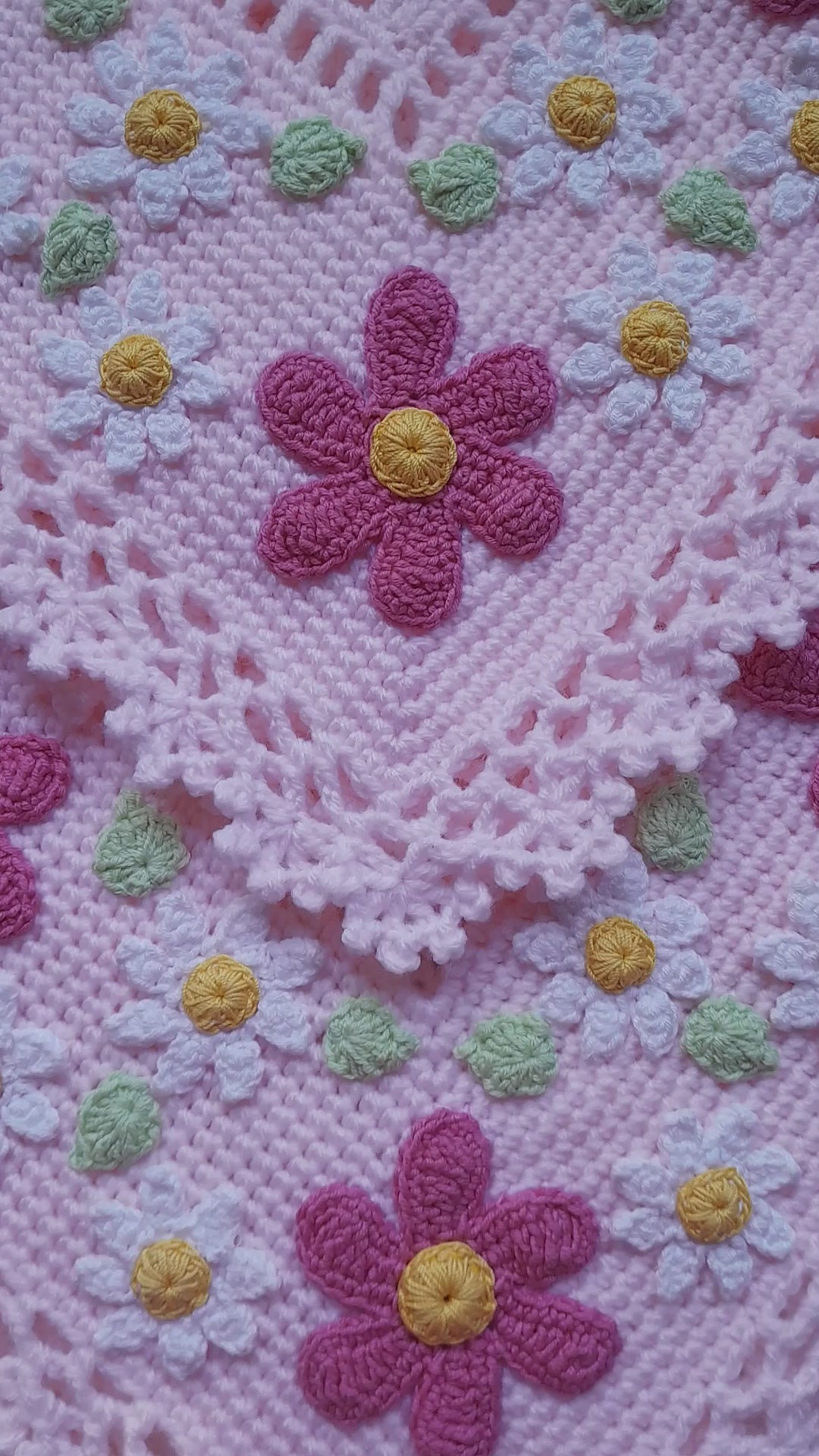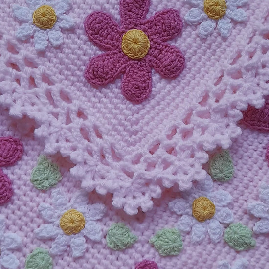 Crochet Baby Blanket Pink Flowers Daisy Applique