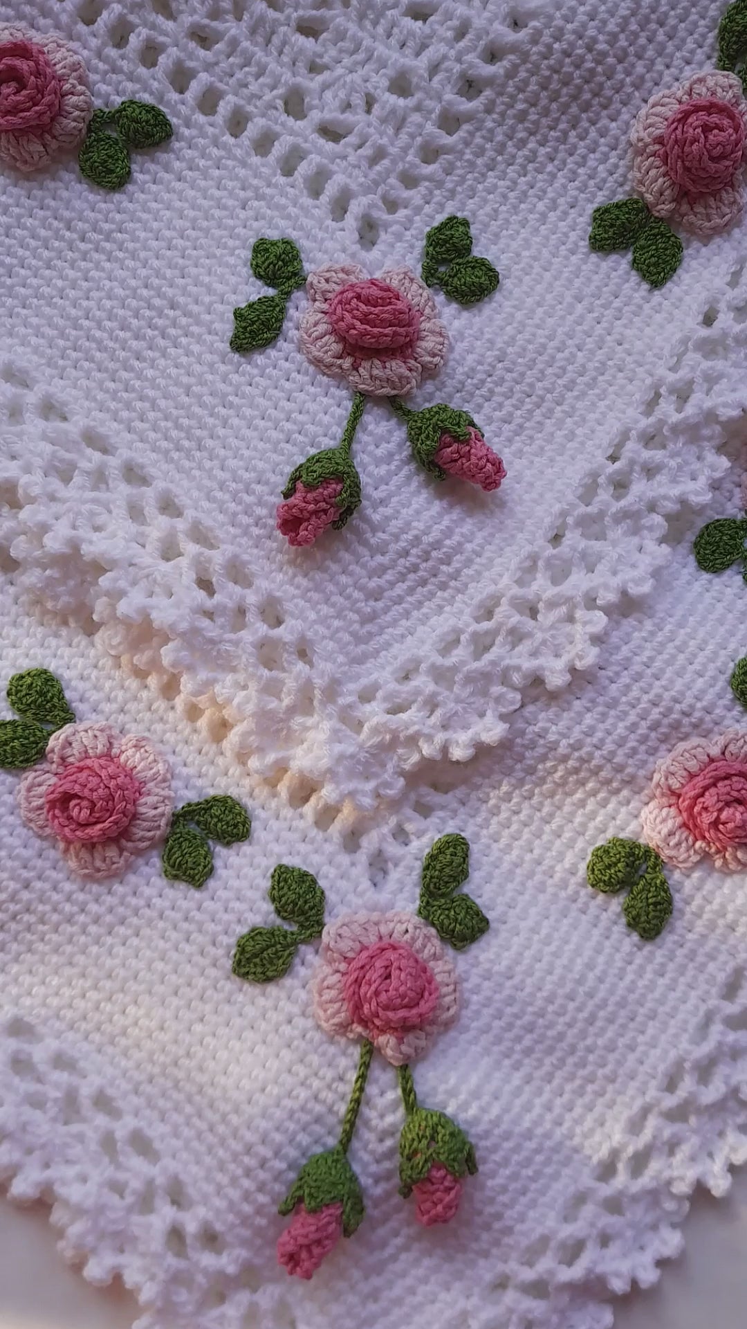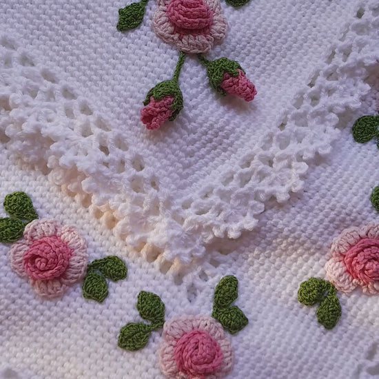 Crochet Baby Blanket Rose Garden Flowers Applique